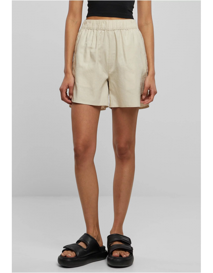 Casual pants for a casual summer. These cotton-linen shorts offer a smooth loose fit and are also light and airy, making them the right choice for hot days. An elastic waistband ensures a stable fit, while two pockets on the side seam leave room for the hands and essentials. The hem is slightly rounded and provides two slits.