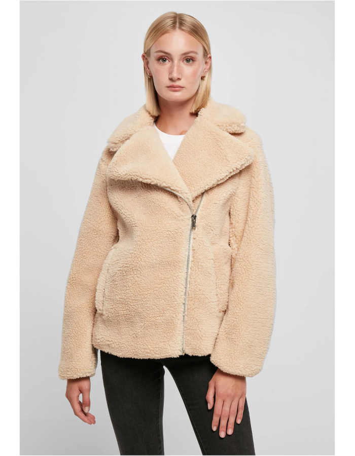 Our women’s sherpa biker jacket is a unique blend of chic and comfortable. Made from a fuzzy fabric that is soft and warm, it is an ideal garment for spring, autumn, and the beginning of winter, perfect for everyday wear. Featuring a loose fit, lapel collar, and practical side pockets, this jacket is a great in-between clothing piece that you'll love to wear again and again and on a variety of occasions, whether it's for a date, a stroll in the park or picking your kids up from school.