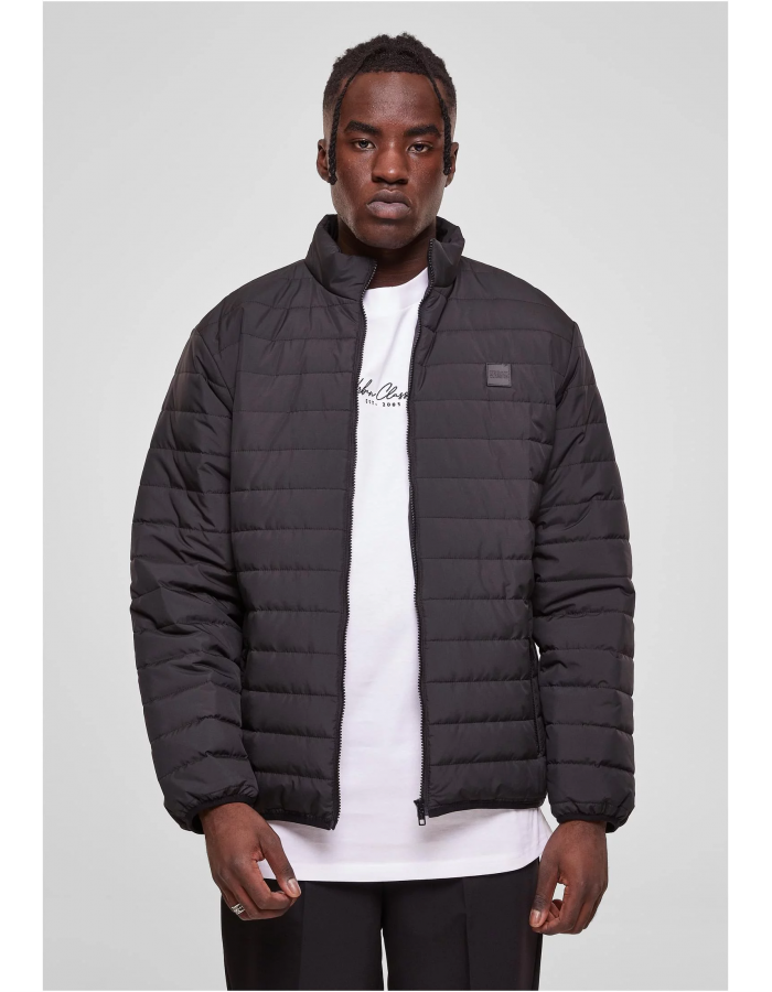 Designed with an attractive horizontal quilting the lightweight men's puffer jacket is just the perfect between-seasons jacket. It offers two zippered side pockets and one more pocket the inside. Handy is the stand-up collar that’s features an additional chin guard. The puffer jacket fastens with a zipper and includes a tone-in-tone Urban Classics logo patch on the chest. It is a regular fit and is made of sturdy polyester.