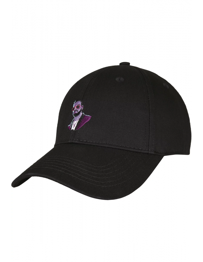This simple cap relies fully on its central embroidery: a smug looking Miami hustler. A matching embroidered Caylor and Sons Logo on the back rounds off the general message. The cap features a pre-curved and sixfold stitched visor and is made of skin-friendly cotton. It is individually adjustable via a clasp buckle on the back.